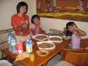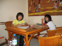 2005/1/6 朝食後、宿題に取り組む娘2人。 |