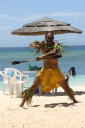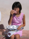 水中散歩からホテルに戻る途中、アンスバタの海岸で遊ぶ娘とそれを見守る母。 |
