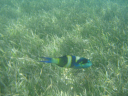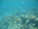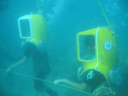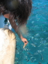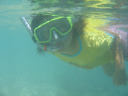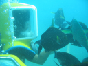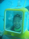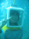 この日の午後は、水中散歩です。ウェットスーツを着て、準備完了。母は見学。 |