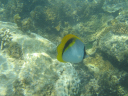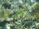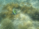 また、マリーDに乗り、バリアリーフに向かいます。その途中から見たアメデ島。灯台が見えます。 |