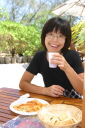市場を一回りして、パンと大きなカフェオレで朝食です。 |