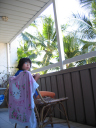 ホテルに戻り、ベランダでくつろぐ優。 |