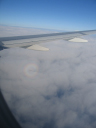 途中、飛行機の窓から雲に写る飛行機の陰とその周りに丸い虹が見えました。 |