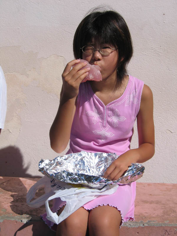 買ったマグロを丸かじりして満足そうな優。