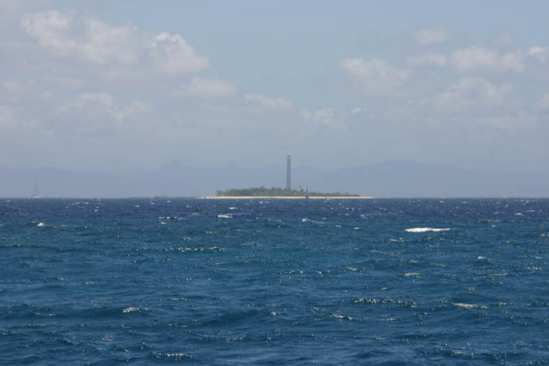 また、マリーDに乗り、バリアリーフに向かいます。その途中から見たアメデ島。灯台が見えます。
