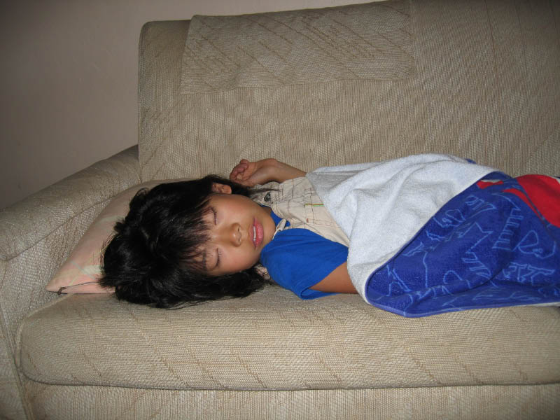 ホテルに戻り、疲れて眠る直。