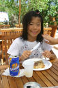 市場を一回りして、パンと大きなカフェオレで朝食です。 |