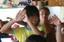 2005/1/6 朝食後、宿題に取り組む娘2人。 |