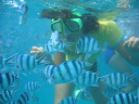この日の午後は、水中散歩です。ウェットスーツを着て、準備完了。母は見学。 |