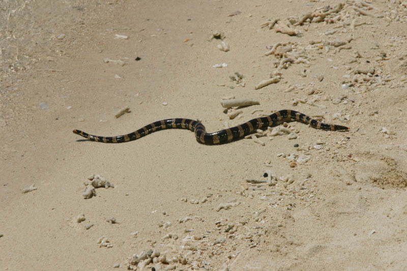トリコ・レイエというウミヘビ。毒も持っているらしい。