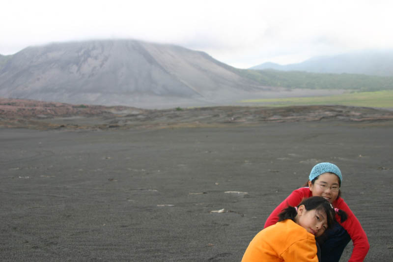 ヤスールをバックに子供達。このあたりは、何年か前まで、湖だったところです。